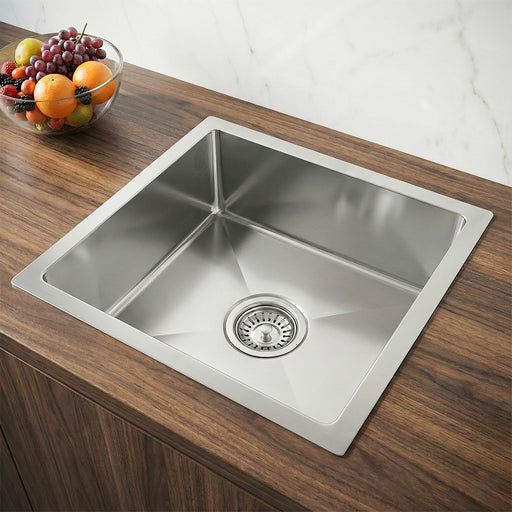 حوض مطبخ M 5045 استانلس ستيل 304 مقاس 45 × 50 سم عُمق 21 سم سُمك 0.8 مللي بمجموعة الصرف 3 بوصة من شركة مانص