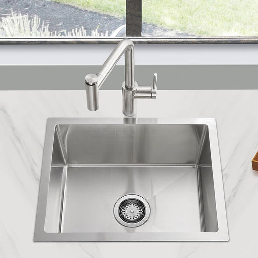 حوض مطبخ هاند ميد M 6047 استانلس ستيل 304 مقاس 47 × 60 سم عُمق 21 سم الشفة 2.5 مللي الحوض سُمك 0.8 مللي بمجموعة الصرف 3 بوصة من شركة مانص