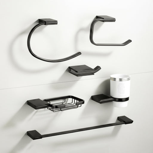 طقم إكسسوارات 6 قطع B 4500 فواطة مستطيلة وصبانة و حامل كأس فرش أسنان و علاقة مزدوجة و فواطة دائرية و وراقة بمجموعة التثبيت اللون أسود من دريم