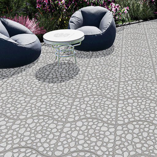 Artبالطلبتمتع بمظهر طبيعي أنيق مع سيراميك أرضيات Outdoor آرت روكس كرارة جراي مقاس 50.5 × 60.5 سم، المصمم ليحاكي حصوات طبيعية بيضاوية ودائرية بلون أبيض رخام...