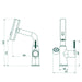- المقاسات: الارتفاع 31 سم، طول القنطرة 15 سم، عرض الخلاط 15 سم