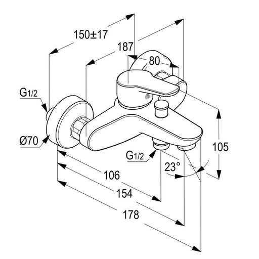 KLUDIبالطلبخلاط حوض بروفايل ستار RAK14124 ذو ذراع واحد للتحكم فى المياه يثبت على الحائط ذو قنطرة ومقبض من كلودى راك