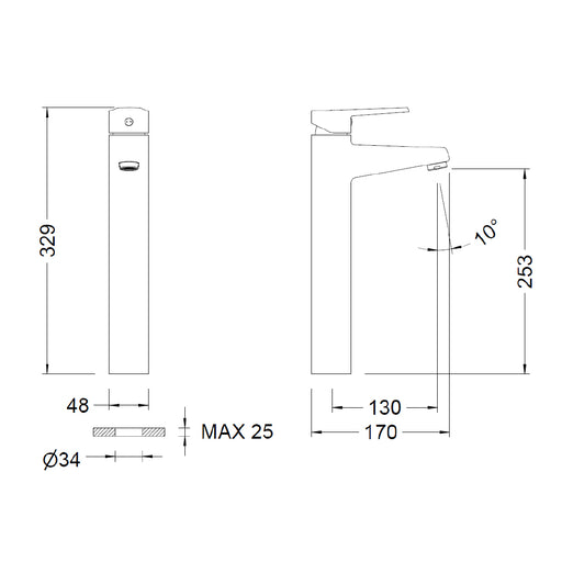 خلاط حوض عالى ميلو MIL-0083B قنطرة عالية يد واحدة بالفيداج اللون أسود من جواد