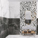 3- ميكس جراي: خلفية رخامية رمادي غامق متداخل مع الأبيض اللامع، مزينة بزخارف متموجة/عضوية عصرية شبيهة بالأرابيسك. البلاطات ممكن تتركب بجانب بعضها لتكوين بانوه جداري متكامل. مصممة أساسًا كخيار ديكوري للحوائط في الريسيبشن، خلفيات التلفزيون، الحمامات والمطابخ.