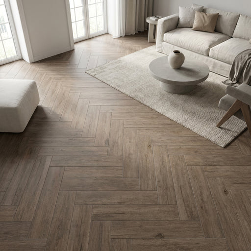 Gemmaغير متوفر بالمخزنسيراميك أرضيات باركيه كاتانيا براون فرز ثالث قطع ليزر مقاس 85.6 × 14 سم من الجوهرة