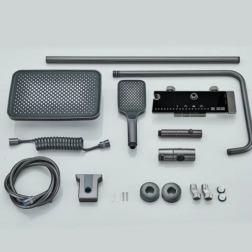 ( طلب مسبق ) شاور سيستم بيانو 4 مخرج A جراي عامود دش بالخلاط ليد مضيئ بشاشة