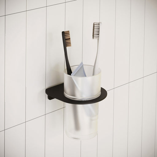( طلب مسبق ) كأس فرش اسنان بالحامل فيرونتينا بلاك FIA 20010 B الكأس زجاج والحامل استانلس ستيل اللون اسود من جواد