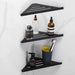 طقم رف ركنة 3 دور إنتاج مصنع بانيوكس، كود الموديل 3CO-01-01S، اللون أسود مط، الخامة استانلس ستيل 304 عالي الجودة المقاوم للصدأ والرطوبة. التصميم مثلث الشكل ليتناسب مع أركان الحوائط، وده بيوفر استغلال ذكي للمساحات. كل رف له سطح مسطح مع فتحات طولية لتصريف المياه بسرعة، وبالتالي يمنع تجمع الميه أو الصابون. اللون الأسود المطفي بيديه مظهر عصري أنيق يتماشى مع الحمامات والمطابخ المودرن.