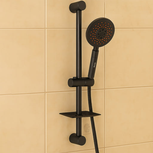 SMGغير متوفر بالمخزنمسطرة دش أسود طول العمو 60 سم سماعة 8.5× 12.5 سم 2 نظام خرطوم 150 سم رف 8 × 12 سم اللون أسود × ذهبي منتج مستورد تركى من SMG