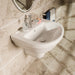 • تصميم "نصف ركبة" معلق يخفي وصلات الصرف ويحافظ على مساحة الأرضية مكشوفة لسهولة التنظيف تحت الحوض.