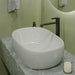 - تصميم عصري يثبت فوق سطح أفقي، مما يجعله نقطة محورية جذابة في الحمام.