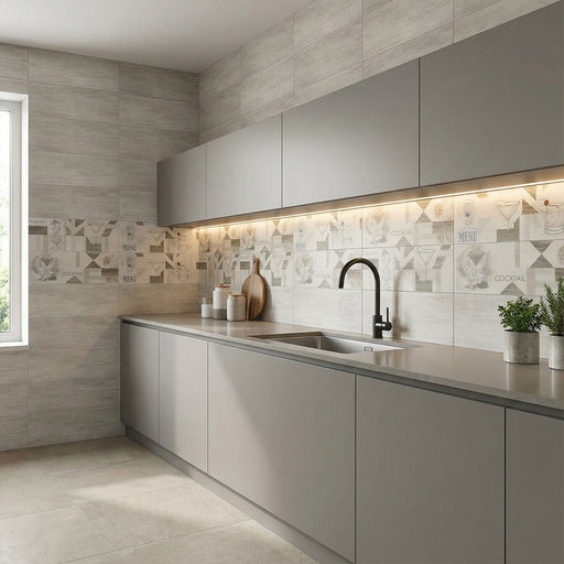 venousمتوفر بالمخزنسيراميك حوائط جراى لامع فرز أول موديل ستانلي مقاس 25 × 60 سم من سيراميكا فينوس كود ديكور المطبخ V STK