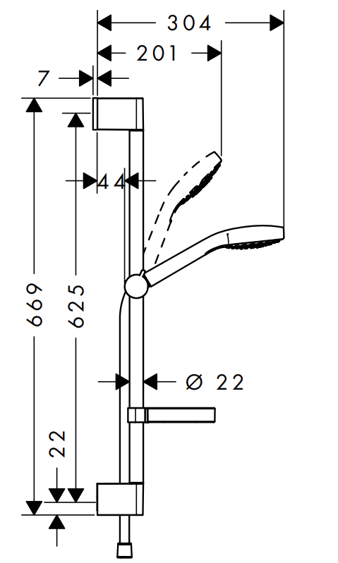 ( طلب مسبق ) مجموعة دش كروما سيلكت 26566400 بسماعة 11 سم 3 نظام ومسطرة 65 سم و خرطوم 160 سم و صبانة وعلاقة متحركة اللون كروم من هانز جروهى