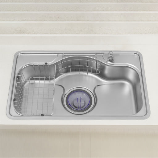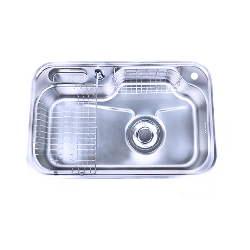 ( طلب مسبق ) حوض - حله JIS 750P شفة فلات مقاس 48 × 75 سم سُمك 0.8 مم بصفاية للمنظفات وصفاية اطباق وصفاية للملاعق وفتحة للخلاط او للفلتر و الصرف 6 بوصة من كورينا
