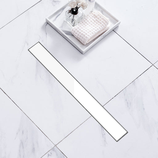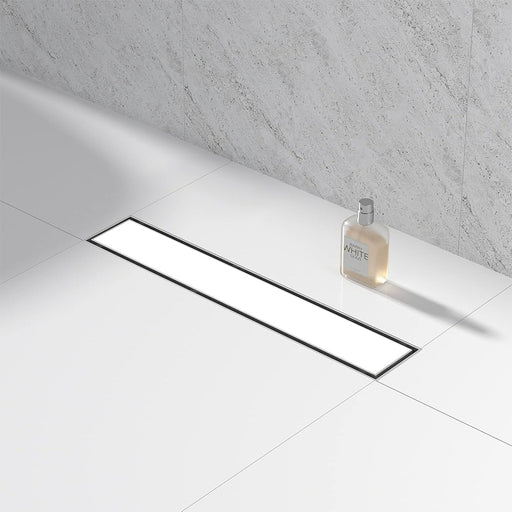 مجرى شاور وايت جلاس بشفة VDL GW 95 استانلس ستيل 95 سم الوش زجاجي ابيض بالصرف اللون كروم من بيورا