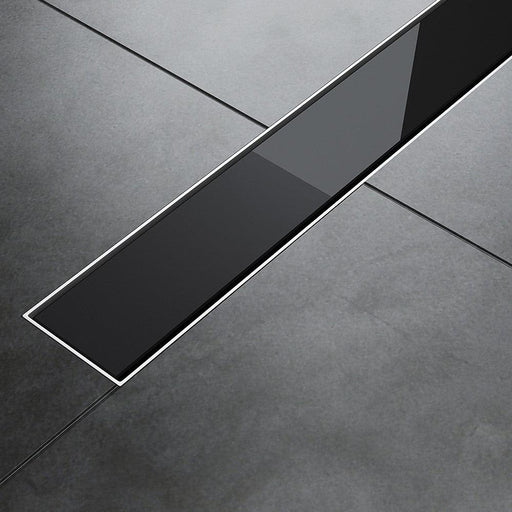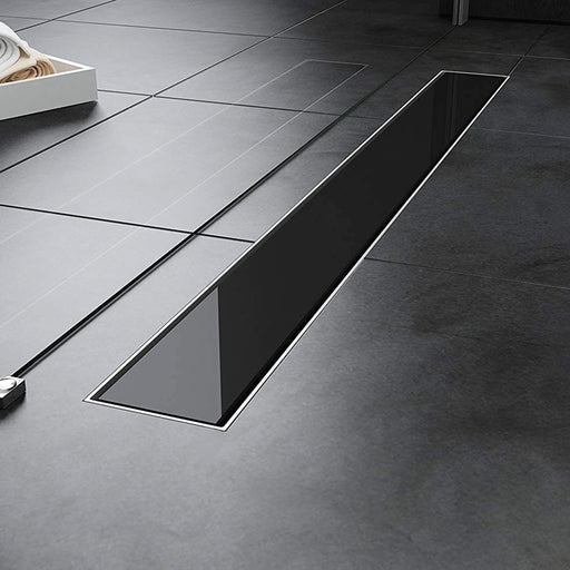 مجرى شاور بلاك جلاس بشفة VDL GB 55 استانلس ستيل 55 سم الوش زجاجي اسود بالصرف اللون كروم من بيورا