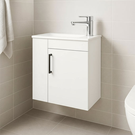 ( طلب مسبق ) وحدة حمام بالحوض دوفو تاينو Tino ابيض 50 سم خشب كونتر HPL ضلفة وفراغين