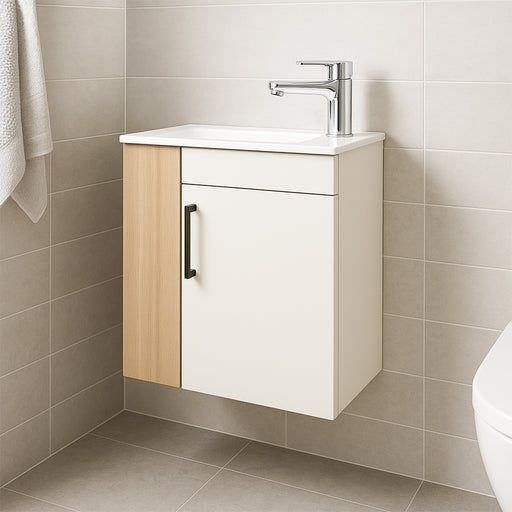 ( طلب مسبق ) وحدة حمام بورديوم بالحوض دوفو تاينو Tino 8475 ابيض × طحيني 50 سم ضلفة وفراغين