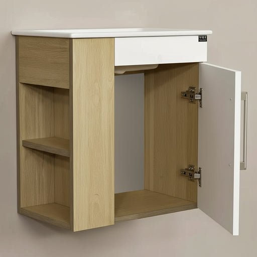 ( طلب مسبق ) وحدة حمام بالحوض مارى MARE لحوض مقاس 60 سم الوحدة مصنعة بخشب كونتر معالج HPL المقاوم لبخار المياة بدرج واحد ورف بدون المرأة من دوفو