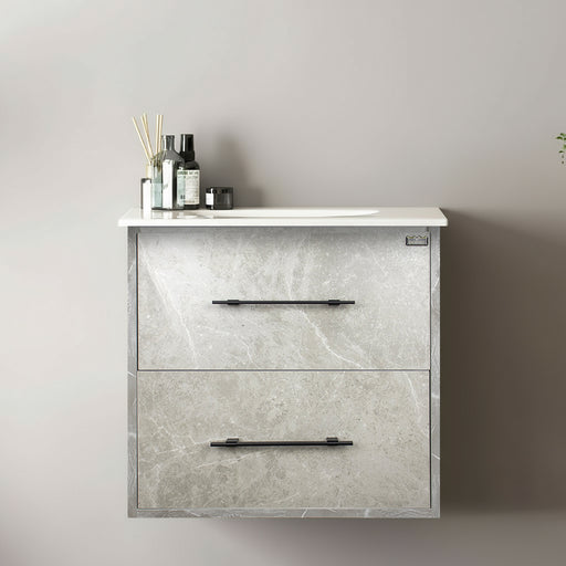 ( طلب مسبق ) وحدة حمام بورديوم بالحوض دوفو ايما Emma 102 ابيض × رخامي 80 سم ضلفة ودرج ورف